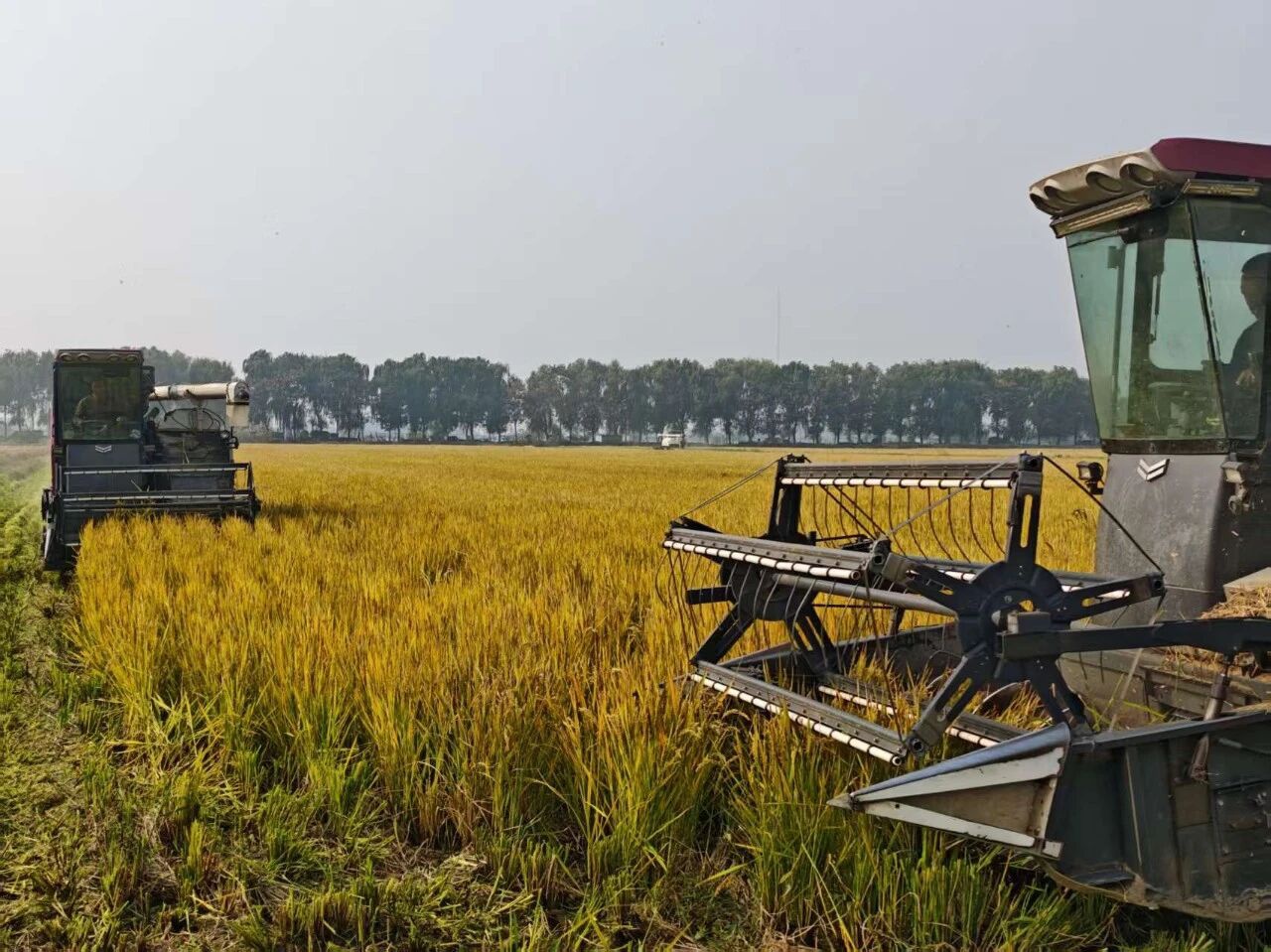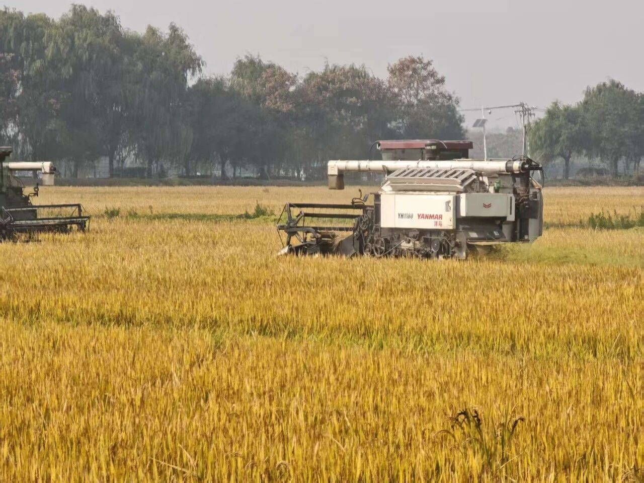 初冬的晴日,正是開鐮佳時(shí)。在淮安白馬湖示范種植基地,連片的稻田泛著金黃,大型收割機(jī)正有序地往復(fù)穿梭。隨 著機(jī)械臂的擺動(dòng),飽滿的稻穗被迅速卷入,脫粒、裝車,空氣里彌漫著新鮮稻草與泥土的清新氣息。